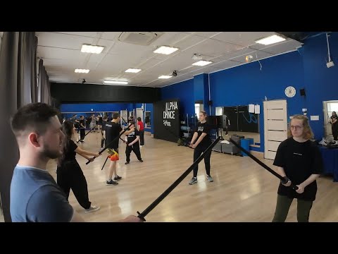 Обучение правильным стойкам и перемещениям при фехтовании, отработка ударов и защит длинным и коротким мечом.