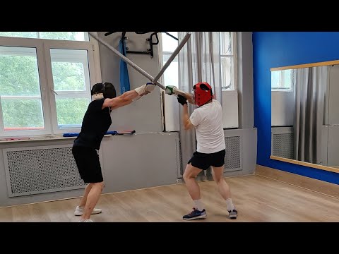 Спарринг на длинных круглых двуручных мечах чанбара о-катана тёкен в школе кендзюцу Katana Club.